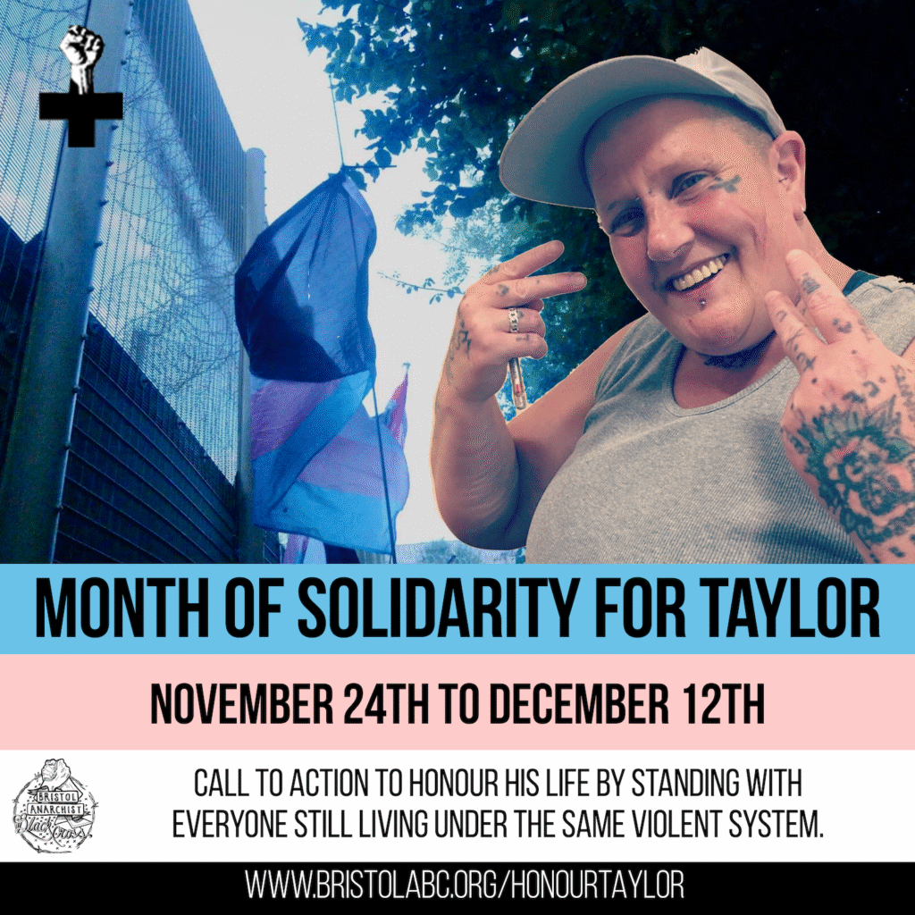 Bristol Anarchist Black Cross is calling for a Month of Solidarity for Taylor from November 24th to December 12th.